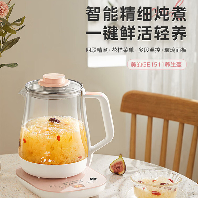 自营 美的养生壶多功能玻璃花茶壶煮茶器电茶壶全自动燕窝壶冲奶壶预约保温 智能触控 1.5L MK-GE1531 粉色 1.5L¥251.58热销中