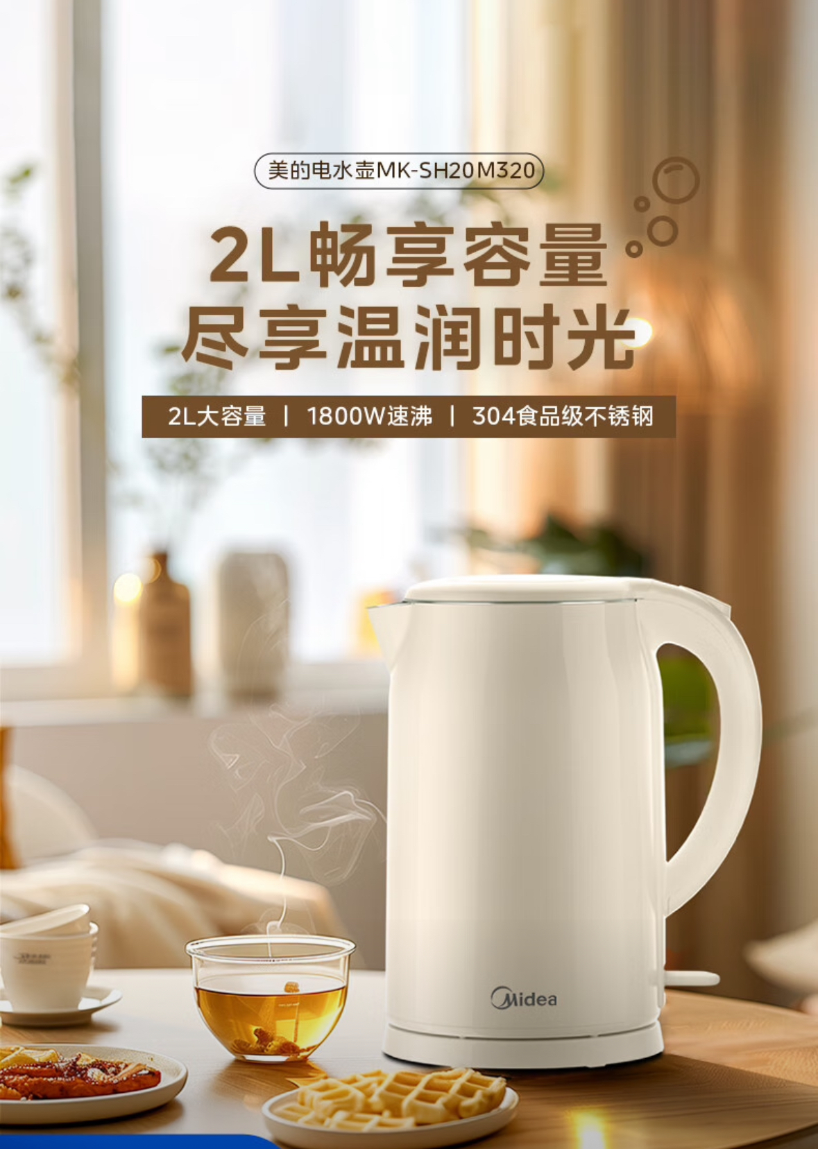 自营 美的(Midea)电水壶家用烧水壶1.7升双层防烫防干烧316不锈钢热水壶 MK-PJ17A01¥186.00热销中