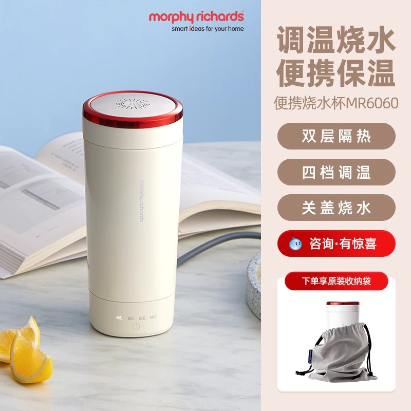 自营 摩飞 MR6060 电热水壶便携式烧水壶旅行保温电热水杯316不锈钢烧水杯密封调温 椰奶白¥334.00热销中