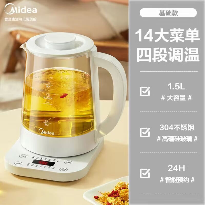 自营 美的(Midea)养生壶家用透明烧水壶1.5L MK-Y20P¥147.00热销中
