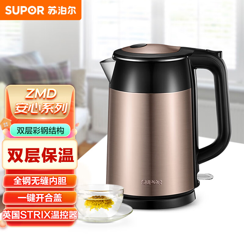 自营 苏泊尔(SUPOR)1.7L316不锈钢内胆双层防烫保温防烫电水壶SW-17S36A¥189.00热销中