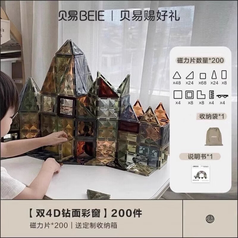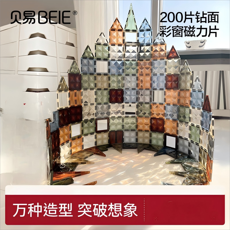 自营 贝易200片【双4D钻面彩窗】磁力片儿童玩具彩窗积木拼装¥466.00热销中