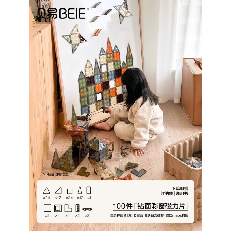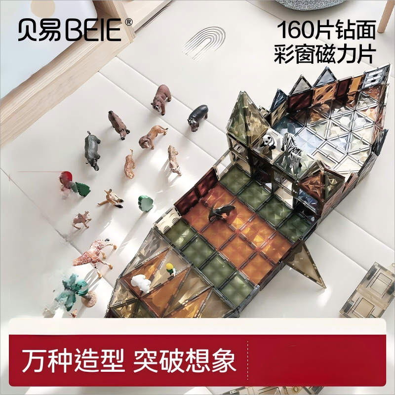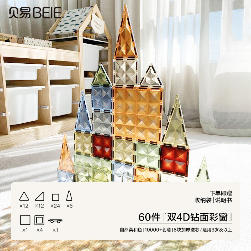 自营 贝易120片【双4D钻面彩窗】磁力片儿童玩具彩窗积木拼装¥466.00热销中