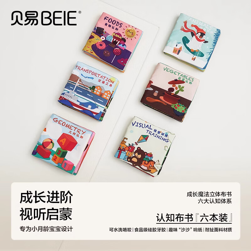 自营 贝易布书(小六本)早教启蒙婴儿玩具宝宝布书认知可啃咬撕撕不烂书¥116.00热销中