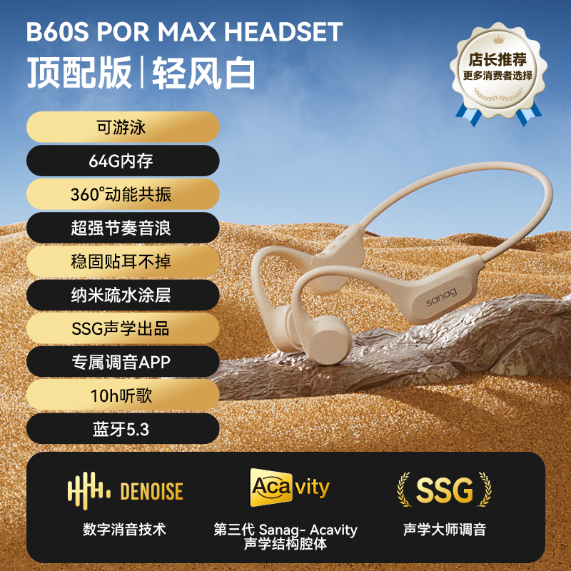 自营 SANAG塞那B60S ProMAX骨传导专业级防水游泳蓝牙耳机运动跑步大音量专用 专业游泳-米色-64G¥478.00热销中