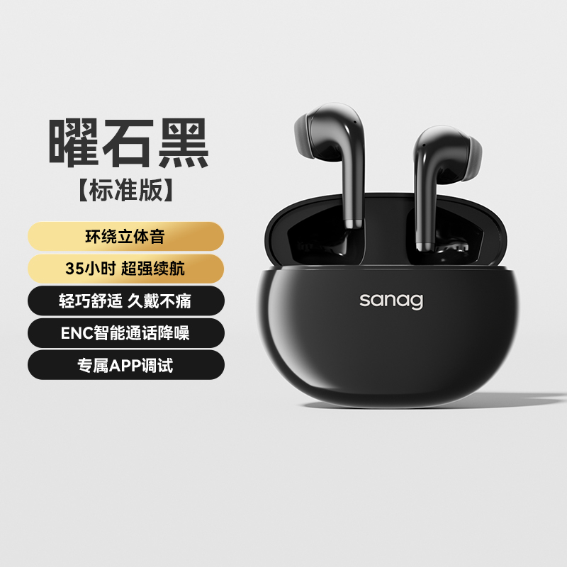 自营 sanag 塞那蓝牙耳机入耳式运动降噪超无感延迟 T81S-T81SPro-耳机曜石黑¥178.90热销中