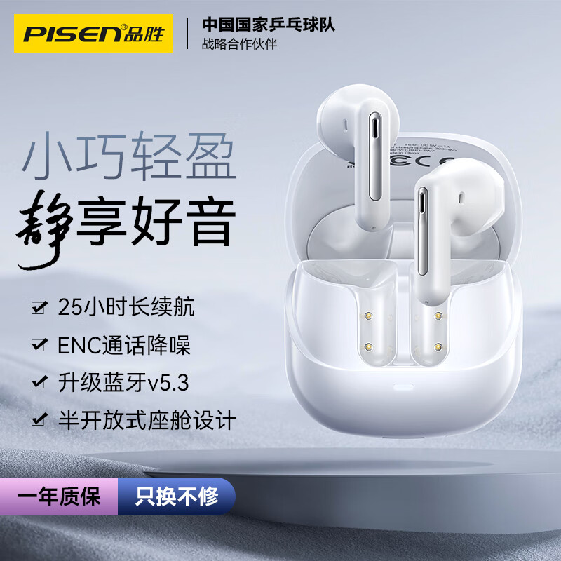 自营 品胜(PISEN) C2真无线蓝牙耳机 半入耳式耳机 蓝牙5.3 适用于苹果华为小米vivo手机 BHD-TW7¥123.60热销中