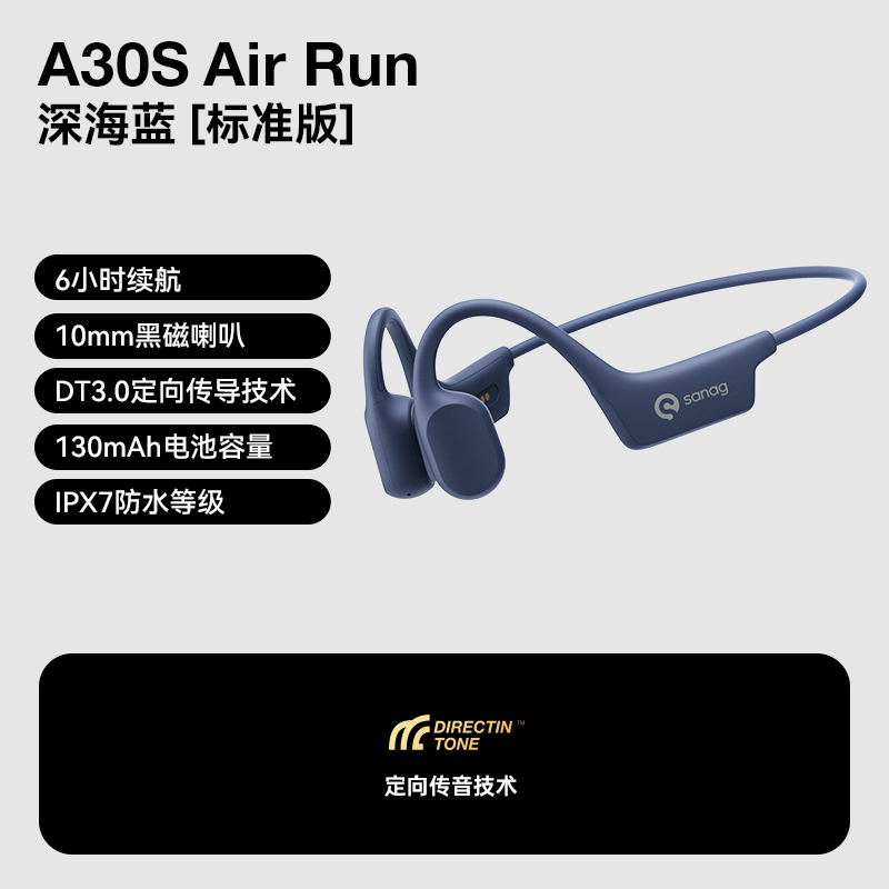 自营 SANAG塞那 A30SPro骨传导耳机升级气传导运动耳机 不入耳式蓝牙耳机户外跑步防汗 360°全景音 深海蓝¥190.00热销中