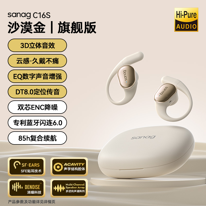 自营 SANAG塞那 C16S蓝牙耳机 挂耳式骨传导概念无线开放式运动耳挂耳夹防水跑步 米色¥153.00热销中