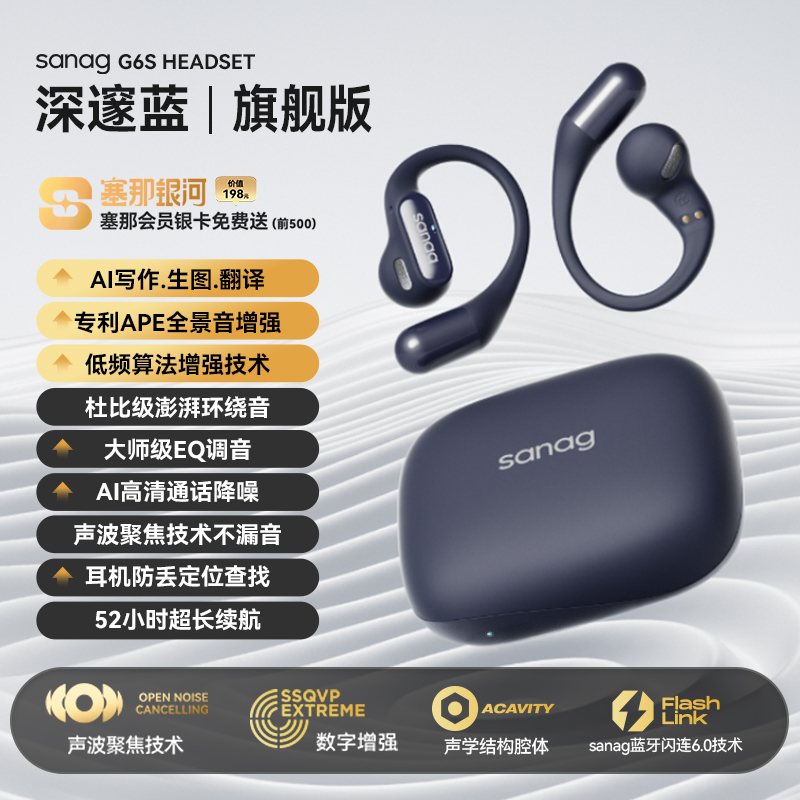 自营 SANAG塞那S6S PRO耳夹耳机 无尽黑色¥307.20热销中