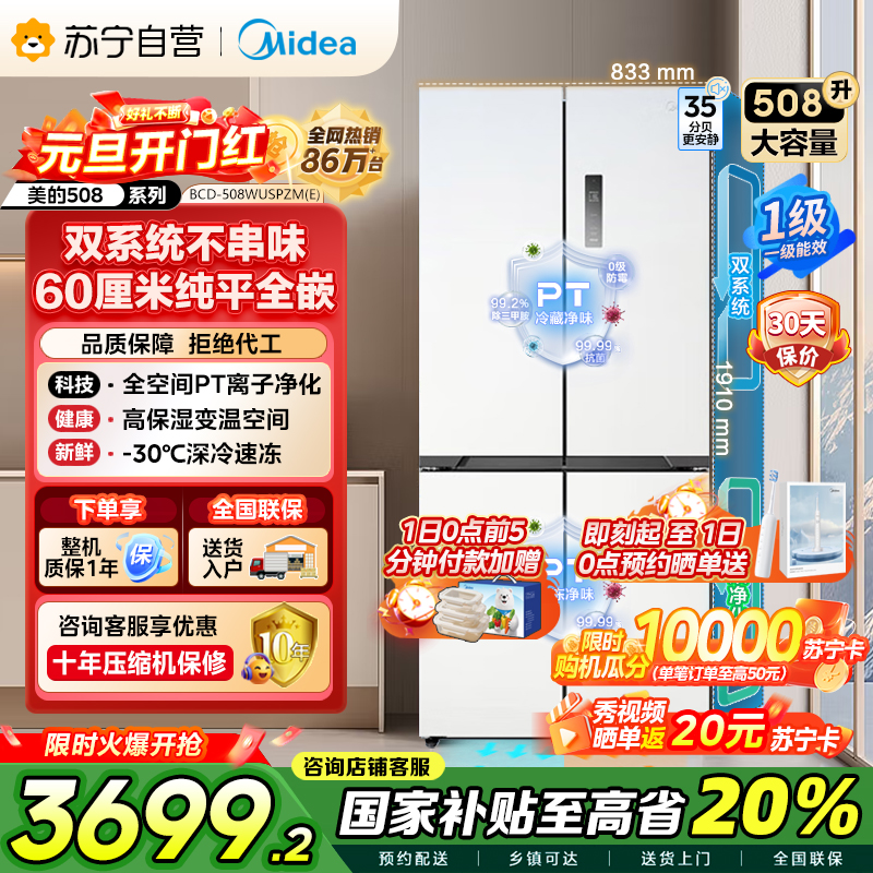 自营 美的 冰箱 BCD-508WUSPZM(E) 星尘白¥5949.00热销中 -