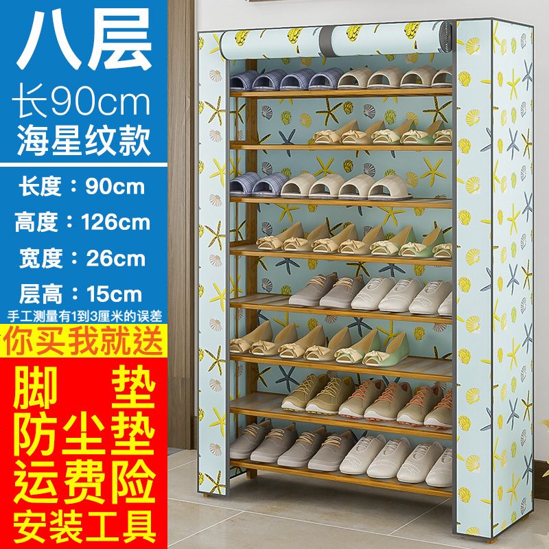 楠竹多层鞋架防尘布套简约竹简易鞋柜家用经济型大容量收纳架子 海星纹布套8层90cm¥485.00热销中 -