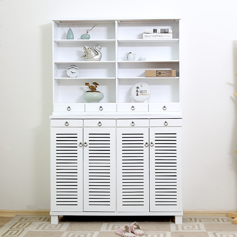 简约现代实木鞋柜 百叶透气玄关柜 大容量收纳柜免安装 整装_白色四_+上节¥2186.00热销中 -