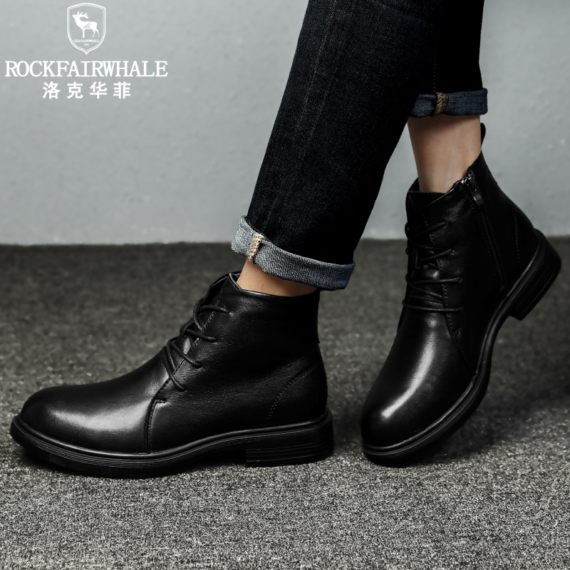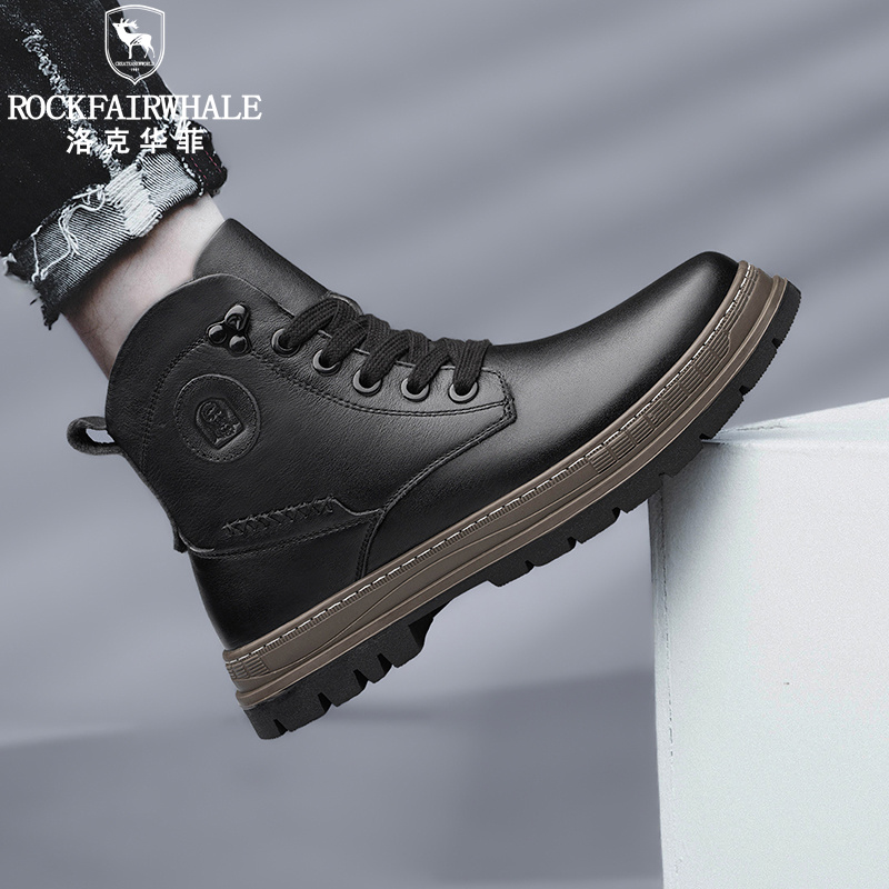 Rock Fairwhale洛克华菲 马丁靴男中帮工装靴英伦风冬季加绒短靴子百搭高帮潮鞋韩版真皮靴大码 黑色 46码¥1308.00热销中 -