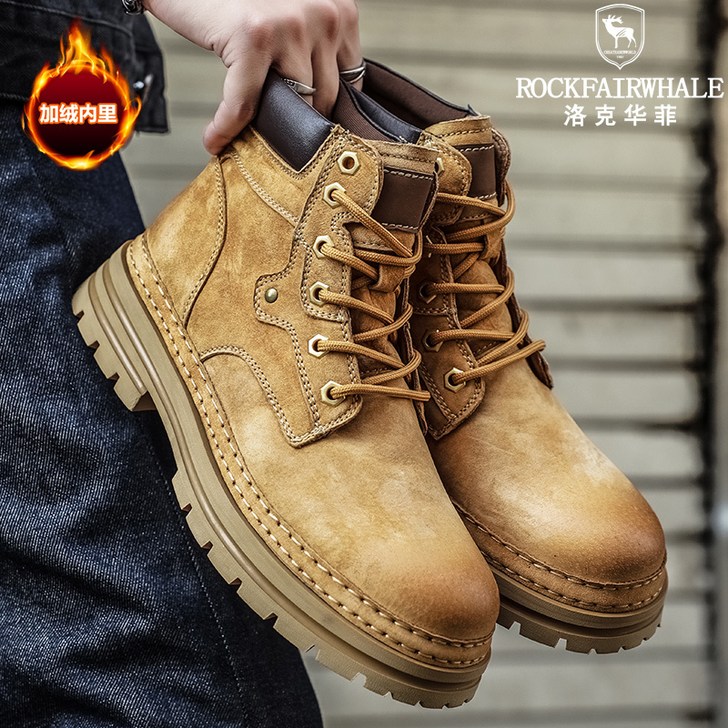 洛克华菲马丁靴男款冬季英伦风高帮工装靴男士中帮运动耐磨休闲沙漠大黄靴 金黄加绒 42码¥1158.00热销中 -