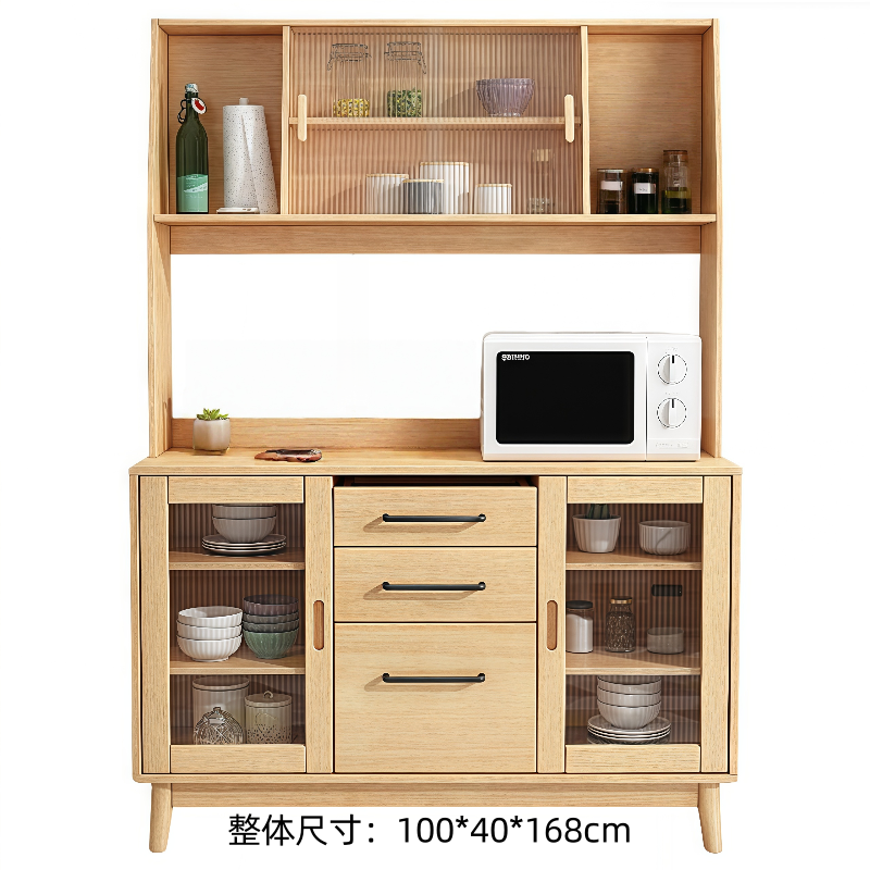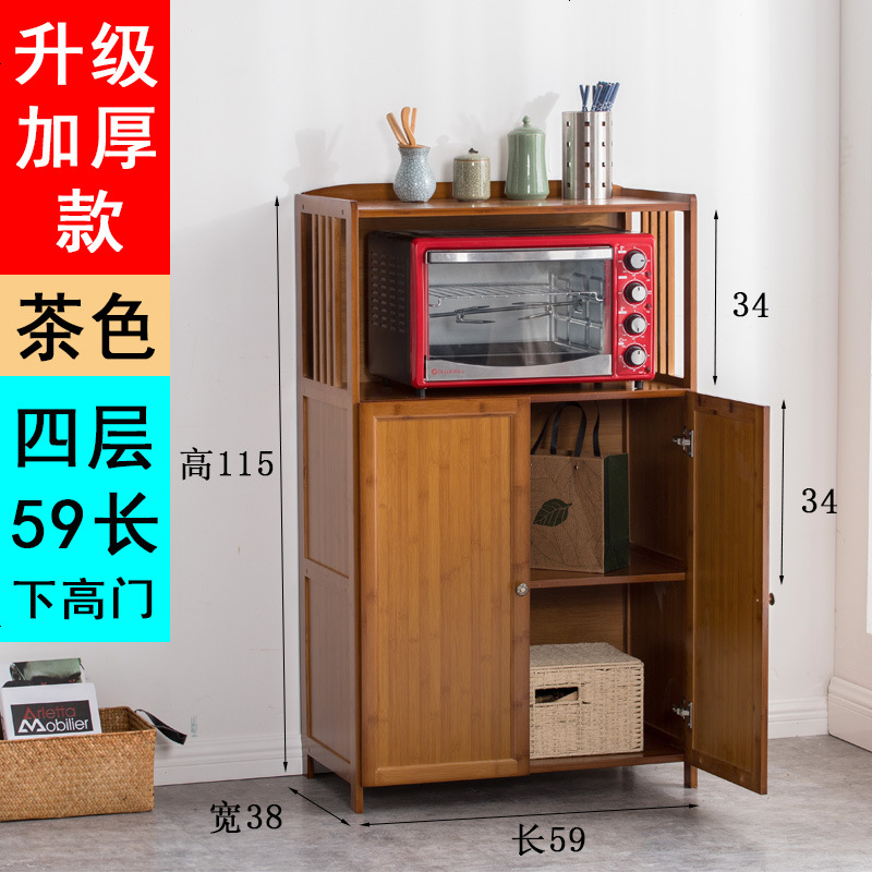 楠竹厨房餐边柜简易橱柜多功能实木微波炉架碗柜储物收纳茶水柜子_590_206 浅棕色_茶色4层59下高__双_¥374.40热销中 -