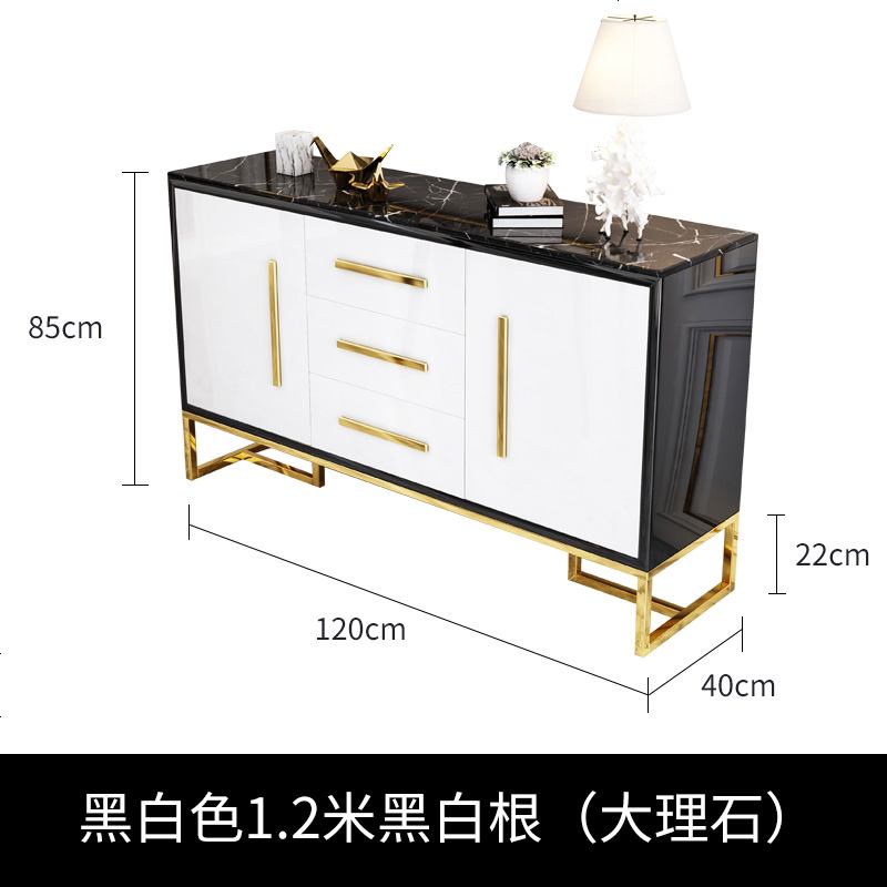 轻奢餐边柜现代简约大理石面客厅玄关柜微波炉柜子厨房储物柜碗柜_165_562 1.2米黑白色黑白根大理石_双_¥3234.40热销中 -