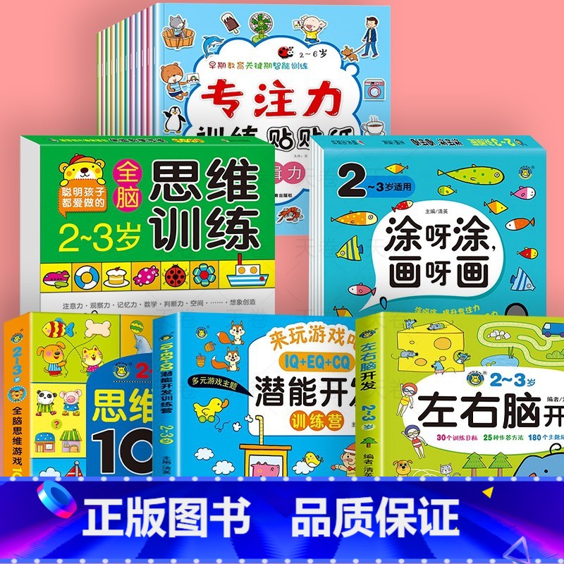 17册【2-3岁】左右脑+思维训练 +潜能开发+思维游戏+贴纸书+涂画书" 【正版】儿童思维训练2-3岁宝宝书籍 左¥87.00热销中 -