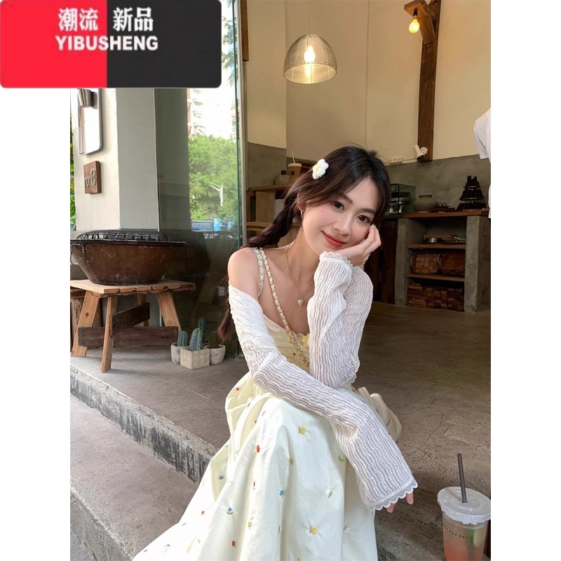YIBUSHENG季温柔风碎花吊带连衣裙两件套装绝美小清新海边度假沙滩长裙女 单拍白色开衫 S¥79.00热销中 -