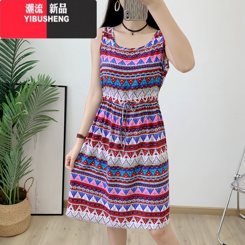 YIBUSHENG民族风小个子无袖外穿棉绸连衣裙人造棉新款碎花收腰背心裙子女 20#红粉角纹短款 L建议110斤内¥72.00热销中 -