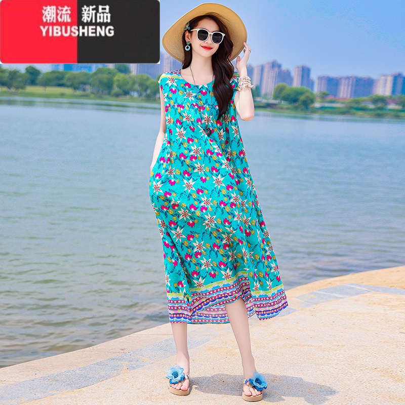 YIBUSHENG高端棉绸连衣裙女新款沙滩裙季人造棉宽松加肥加大码外穿长裙子 4号 2XL建议120-145斤¥70.00热销中 -