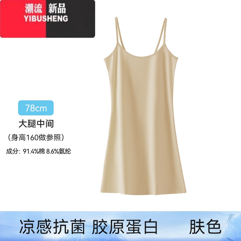YIBUSHENG内搭吊带裙季薄款内衬裙白色气质女装黑色性感打底连衣裙子 肤色-78cm(大腿中间) 2XL130-145斤¥90.00热销中 -