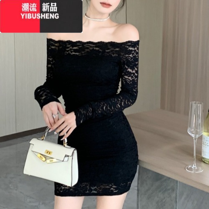 YIBUSHENG辣妹一字肩连衣裙女胖MM大码春季气质内搭修身显瘦长袖蕾丝包臀裙 黑色 4XL175-200斤¥52.00热销中 -