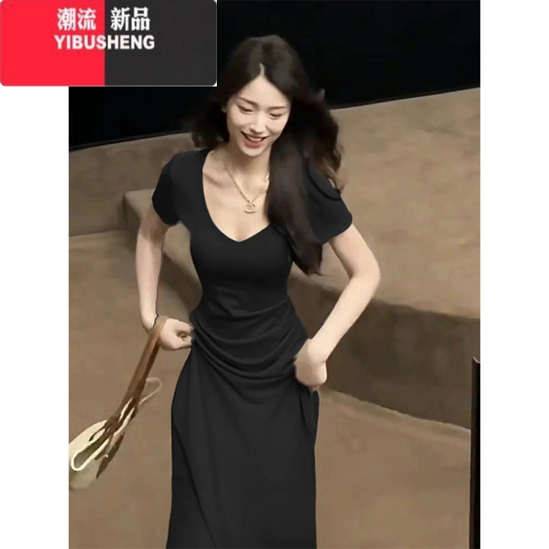 YIBUSHENG法式V领收腰显瘦垂坠感连衣裙2024新款女气质高级感裙子女长裙 黑色 S¥126.00热销中 -
