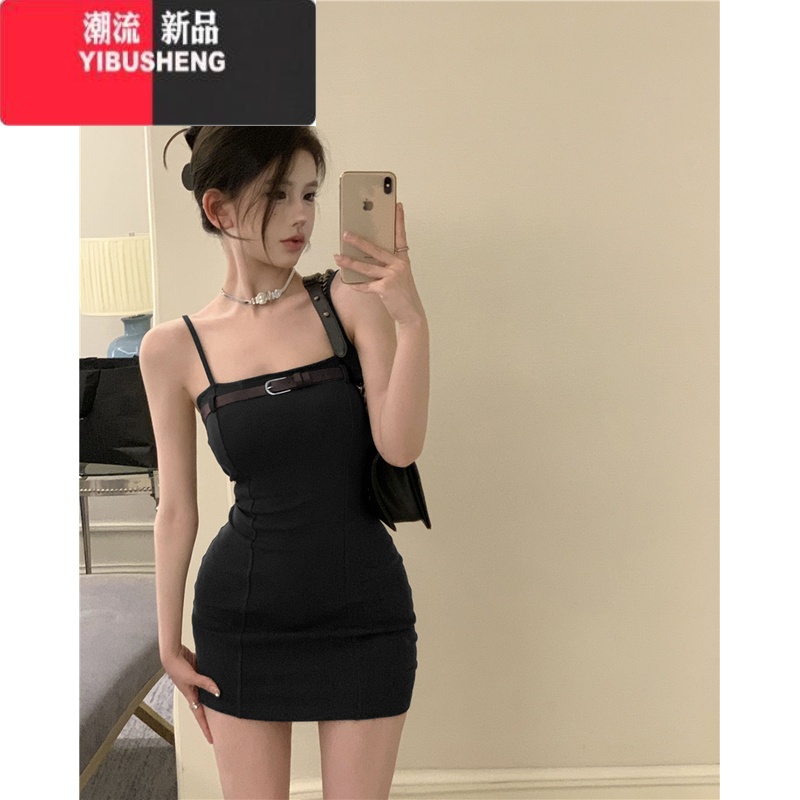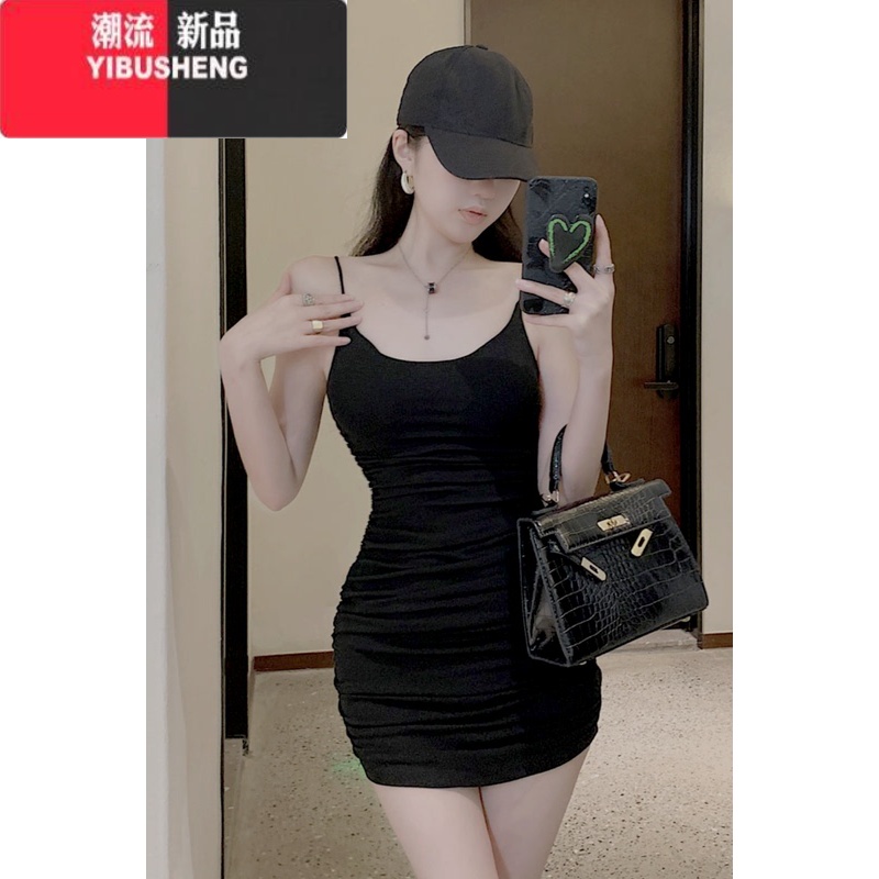 YIBUSHENG季紧身性感显身材吊带连衣裙女内搭带胸垫包臀褶皱短裙子纯欲风 黑色带胸垫 L¥122.00热销中 -