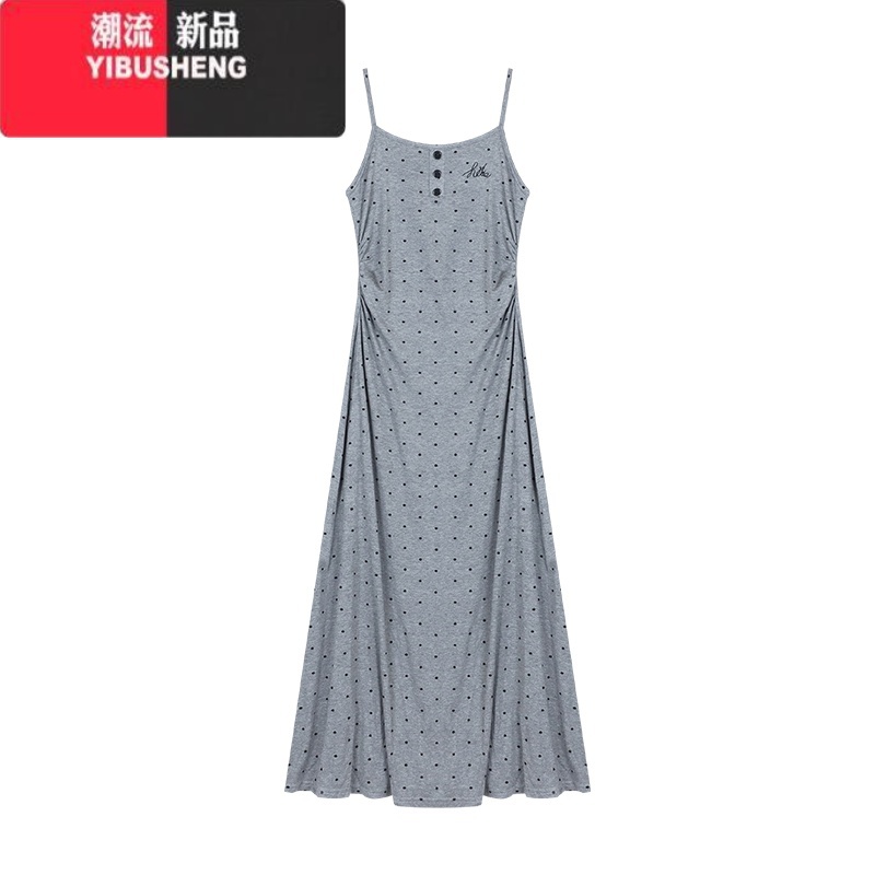 YIBUSHENG气质复古波点吊带连衣裙女装季褶皱收腰显瘦A字裙长裙¥97.00热销中 -