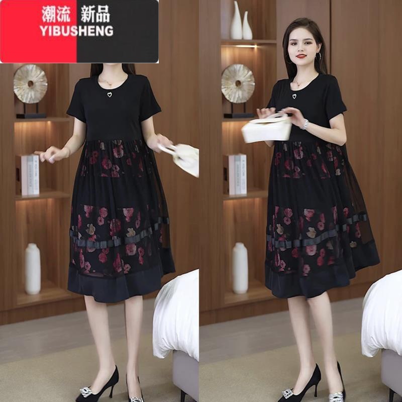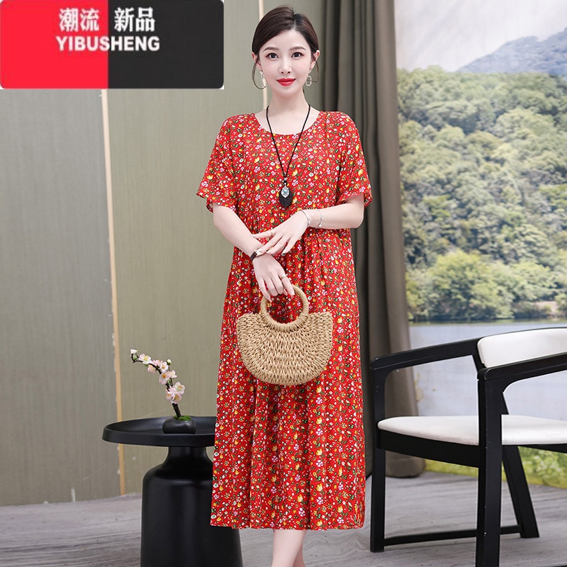 YIBUSHENG小个子短袖连衣裙大码女装季新款洋气中年妈妈装宽松遮肚子裙子 红玫瑰 2XL建议130斤-145斤¥108.00热销中 -
