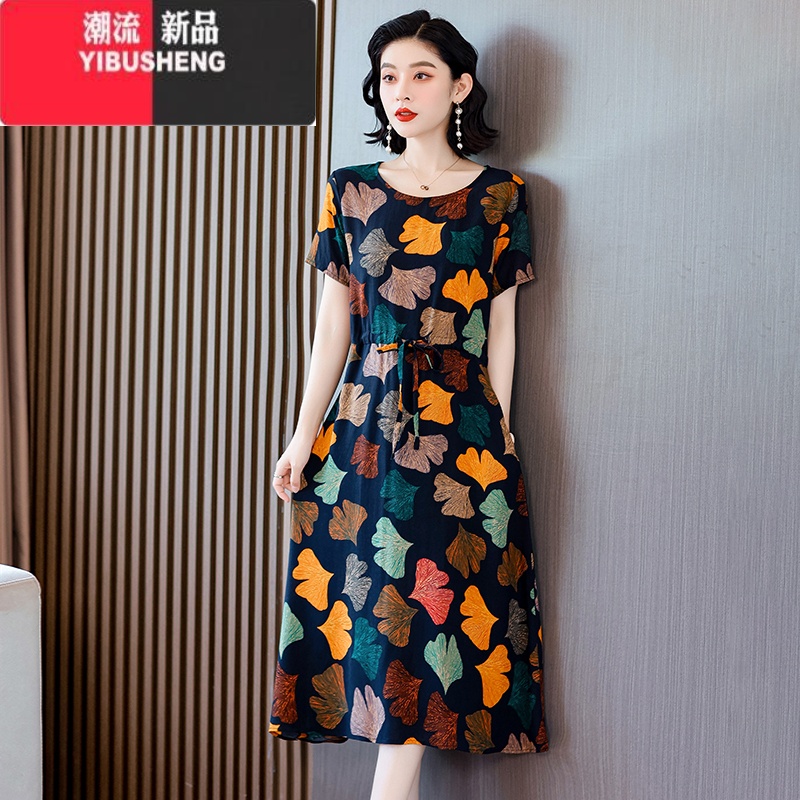 YIBUSHENG新款气质洋气年轻款棉绸连衣裙女季碎花妈妈显瘦人造棉裙子外穿 2# 4XL建议140-155斤¥70.00热销中 -