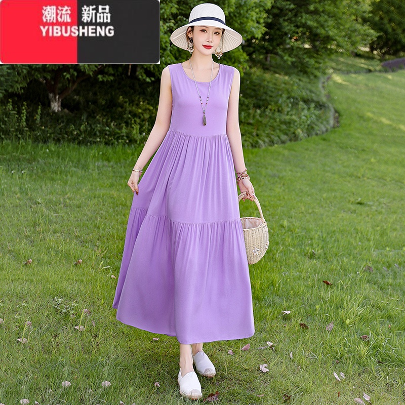 YIBUSHENG棉绸连衣裙2024季波西米亚风新款无袖度假人造棉减龄百搭长裙子 香芋紫 4XL建议145-160斤¥70.00热销中 -