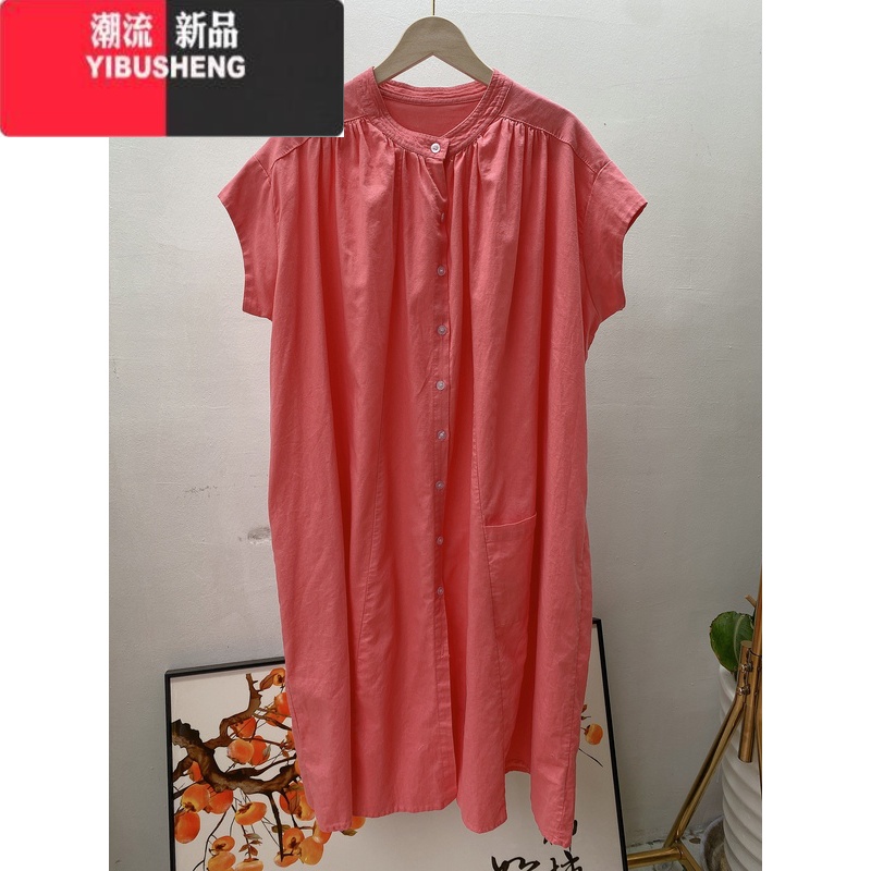 YIBUSHENG日系 慵懒不费力亚麻简约款连衣裙胸围180裙长105 桃子粉 均码¥112.00热销中 -