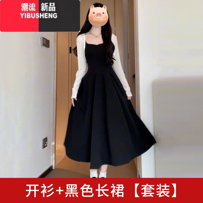 YIBUSHENG微胖梨形身材穿搭2024新款法式黑色吊带连衣裙小个子女短裙套装 白色开衫+黑色长裙厅里厅气/miu系/今年流行漂亮/韩系/奶 65/70kg/XXL¥180.00热销中 -