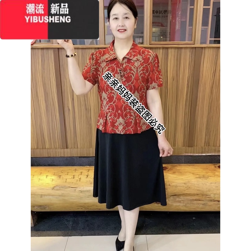 YIBUSHENG2024季新款大码假两件连衣裙女妈妈装改良旗袍50-60岁婆婆裙子 红色花色 2XL111到122斤¥88.00热销中 -
