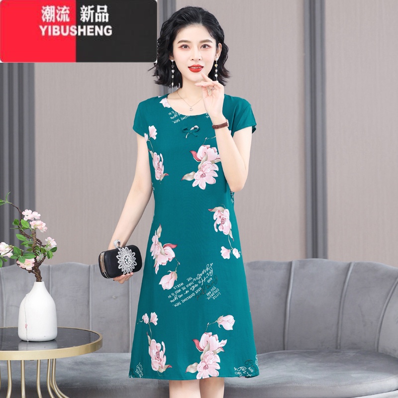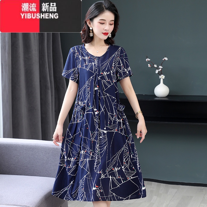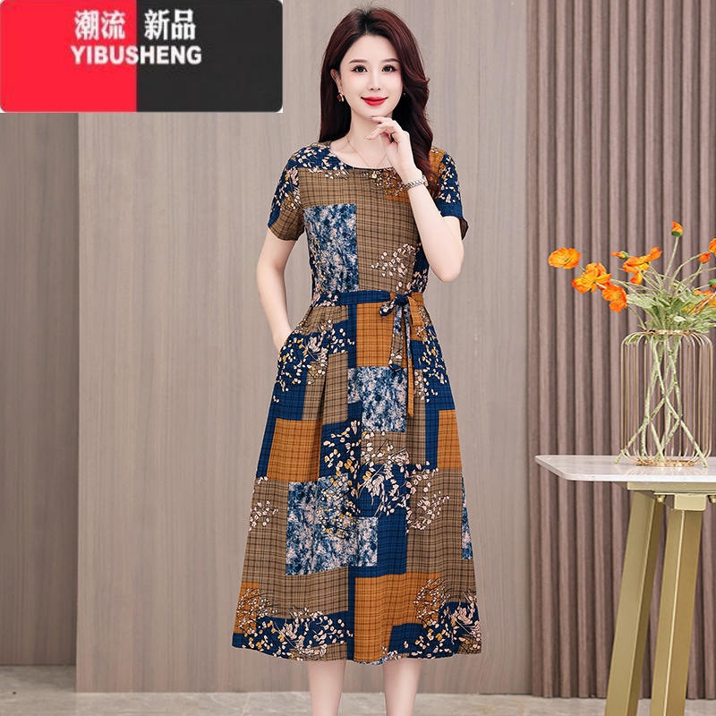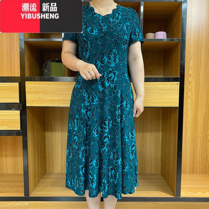 YIBUSHENG装妈妈棉绸连衣裙遮肚子大码短袖中老年女胖人碎花洋气新款裙子 668款6号色 6XL180-205斤¥54.00热销中 -