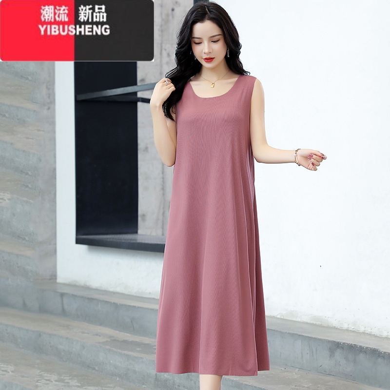 YIBUSHENG纯色棉绸连衣裙女季新款法式高级感休闲气质无袖背心度假风长裙 3号 3XL130-145斤¥81.00热销中 -