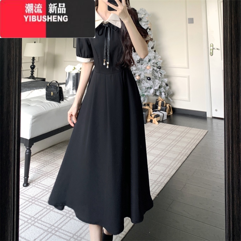 YIBUSHENG法式气质娃娃领黑色碎花连衣裙子女季2024年新款小个子显瘦长裙 长款冷淡系独特别致裙子/职场新人穿搭/厅里厅气/小个子/漂亮 55/60kg/L¥129.00热销中 -