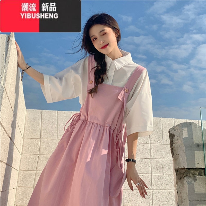 YIBUSHENG日系背带连衣裙少女装2024新款初中高中学生两件套装森系长裙子 单件白色纯棉衬衫夏天穿搭/女装夏款/韩版/宽松/休闲/学院风 3XL¥124.00热销中 -