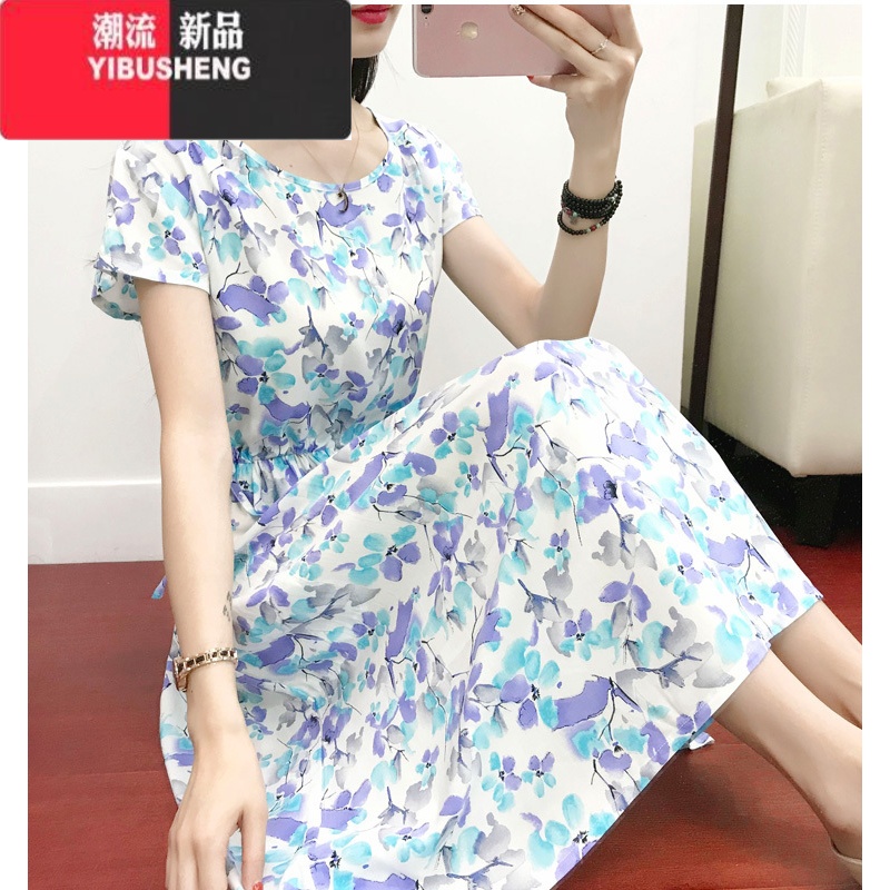 YIBUSHENG新款高端棉绸连衣裙女季中长款短袖显廋碎花大摆人造棉外穿裙子 28蓝色F-28蓝色 XL建议106-120斤¥122.00热销中 -