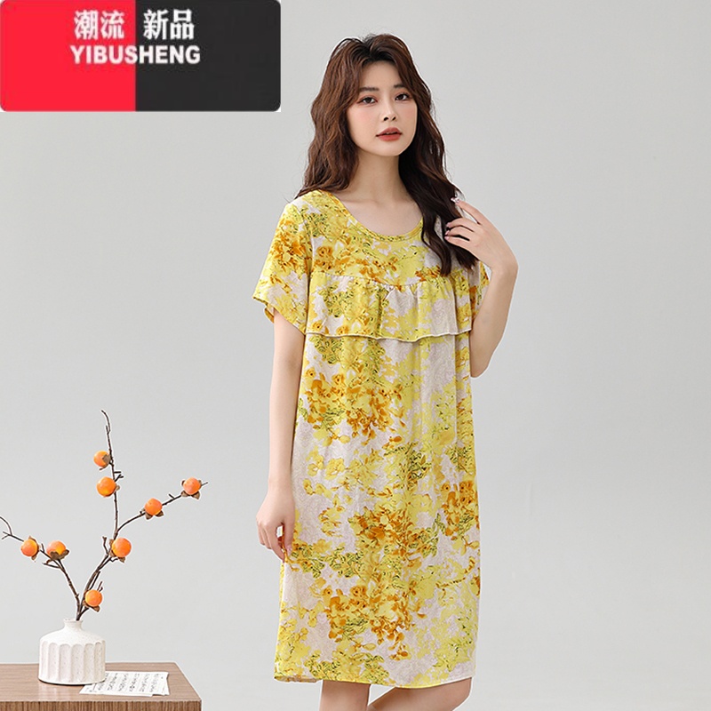 YIBUSHENG防凸点睡衣棉绸睡裙季女款2024新款女士宽松家居服绵绸连衣裙子 13号防凸点 3XL120-140斤¥30.00热销中 -