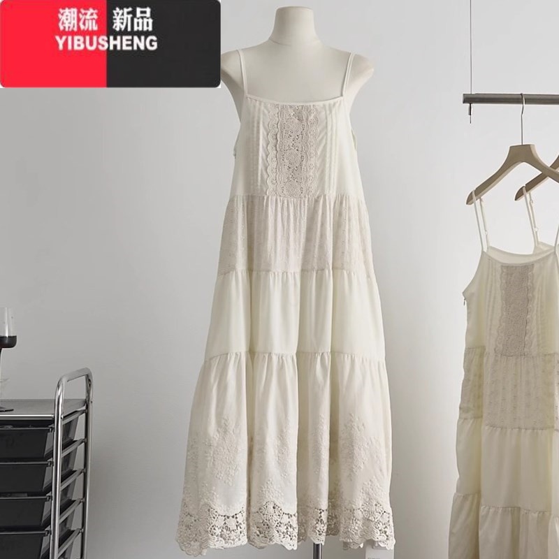YIBUSHENG重工蕾丝边吊带连衣裙2023新款韩版叠穿显瘦长裙¥68.00热销中 -