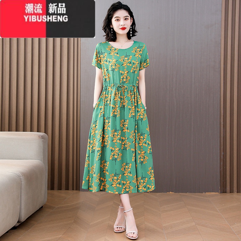 YIBUSHENG新款中年妈妈圆领休闲显瘦连衣裙季气质长裙女40岁洋气裙子女装 绿色偏深 L码建议80-100斤¥39.00热销中 -