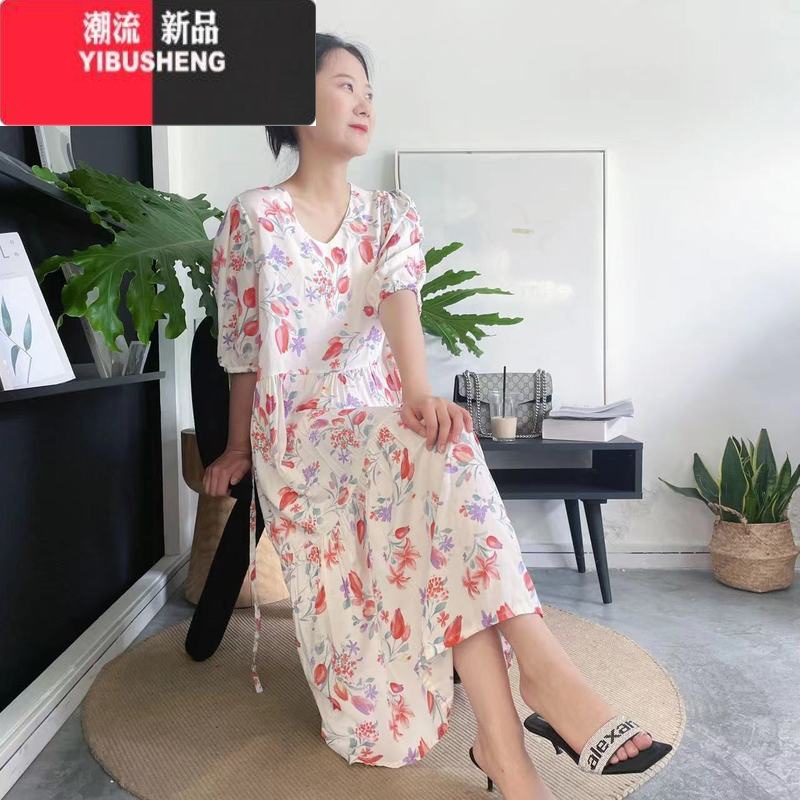 YIBUSHENG法式高级感女外穿碎花人造棉宽松轻薄绵绸连衣裙大码口袋中长款 花开半夏无口袋 小码裙长120cm建议身高162以内¥72.00热销中 -