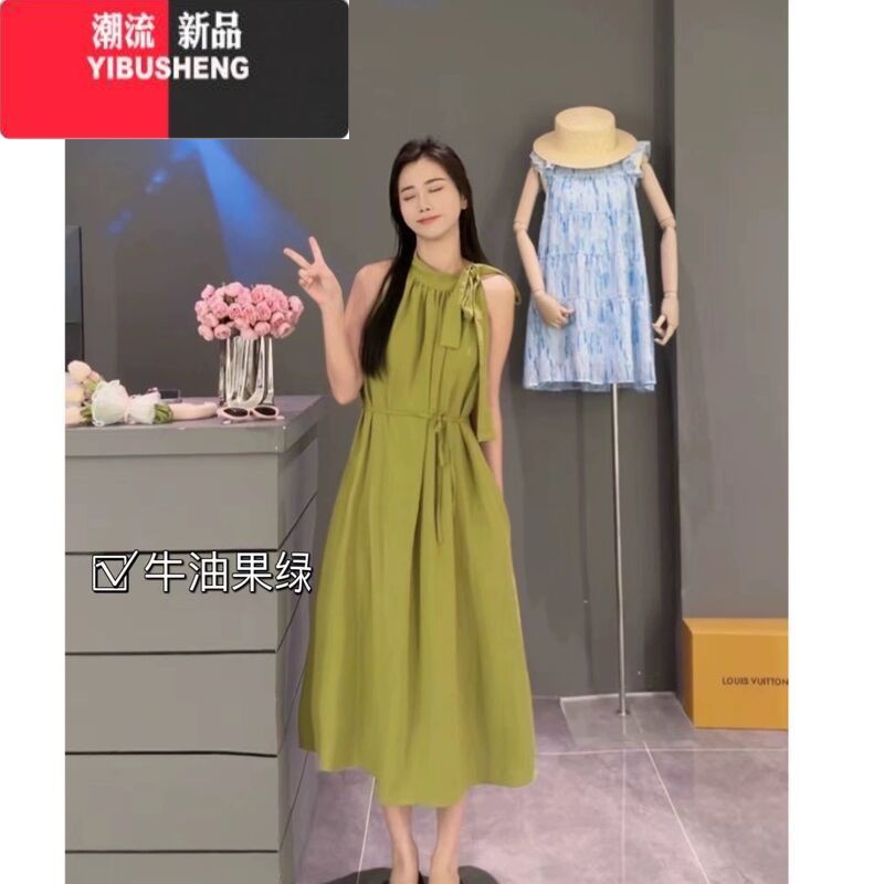 YIBUSHENG2024日新款无袖挂脖度假风慵懒气质女系腰带连衣裙洋气长裙 秋香绿 S90-110斤¥81.00热销中 -