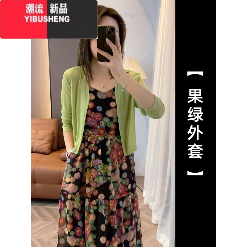 YIBUSHENG法式御姐风碎花吊带连衣裙女季新款V领收腰显瘦气质内搭长裙子 果绿开衫28# L110-125斤¥104.00热销中 -
