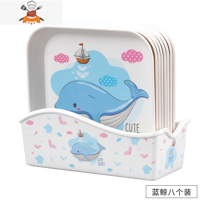 敬平简米吐骨头碟家用餐桌鱼刺垃圾盘密胺水果零食拼盘点心碟子干果盘 蓝鲸方形八个装送同花色底座¥67.03热销中