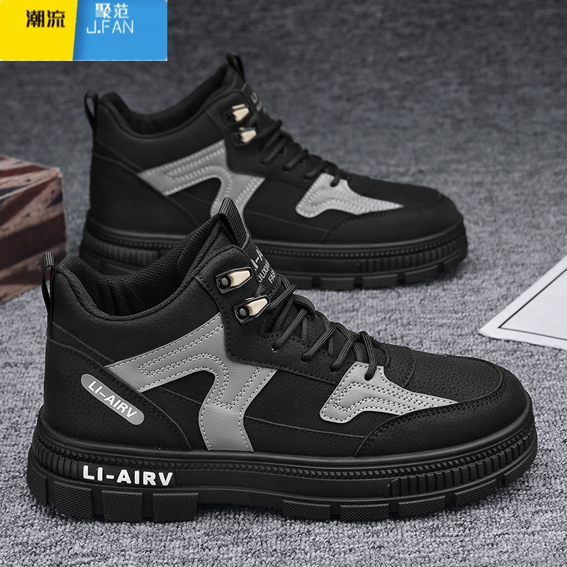 聚范2024新款男鞋春季马丁靴男士夏季英伦风休闲高帮板鞋潮中帮工装2 XY-518黑色 44¥54.00热销中