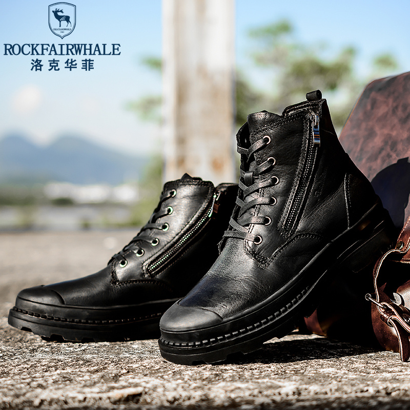 Rock Fairwhale洛克华菲 马丁靴男中帮工装靴英伦风冬季加绒短靴子百搭高帮潮鞋韩版真皮靴大码 黑色加绒 39码¥368.00热销中